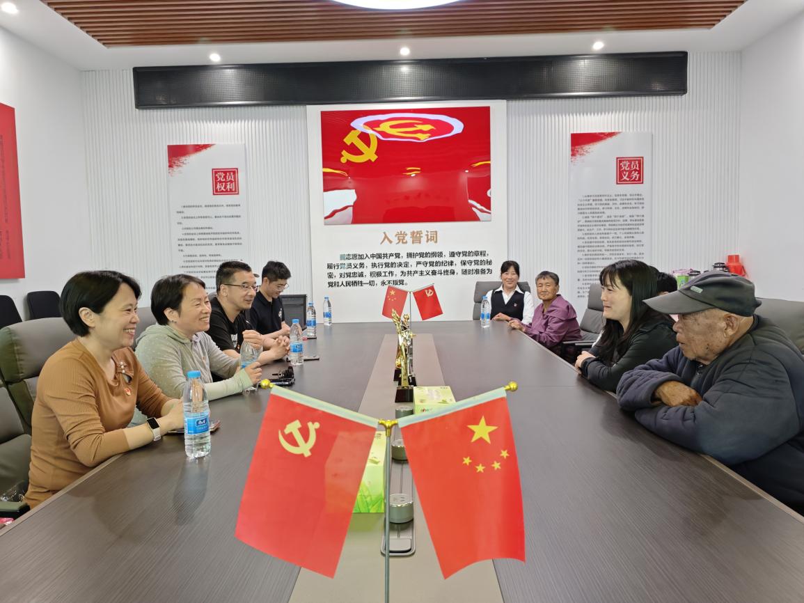 随后,党员们在活动中心与村中老党员围坐交流。在聆听革命故事的过程中,老党员们谈及村子近年来的发展变化,特别提到了农村医疗服务的改善:“过去村里没医少药,乡亲们头疼脑热都要翻山越岭去乡里,最缺的就是扎根基层的好医生。现在党的政策好,你们培养的娃娃以后能来村里当村医,乡亲们看病不用出村,这可是给咱农村人办实事!”老党员们朴实的话语,传递出村民对基层医疗保障的真切需求,让党员们深刻认识到了“服务保障”工作的责任与担当。