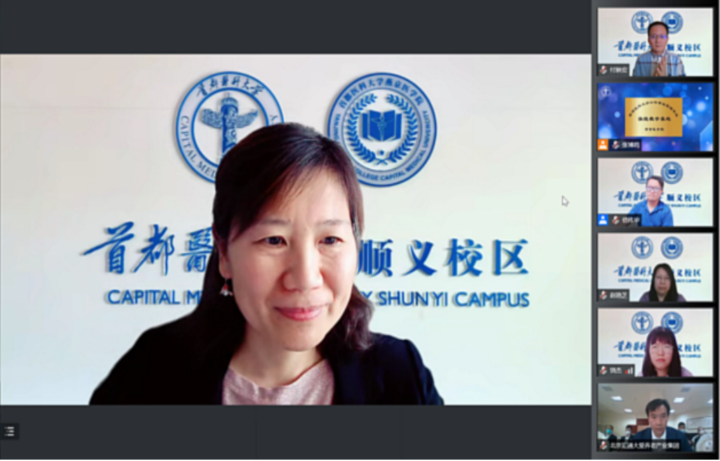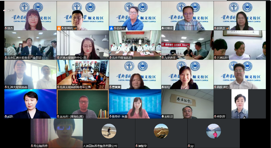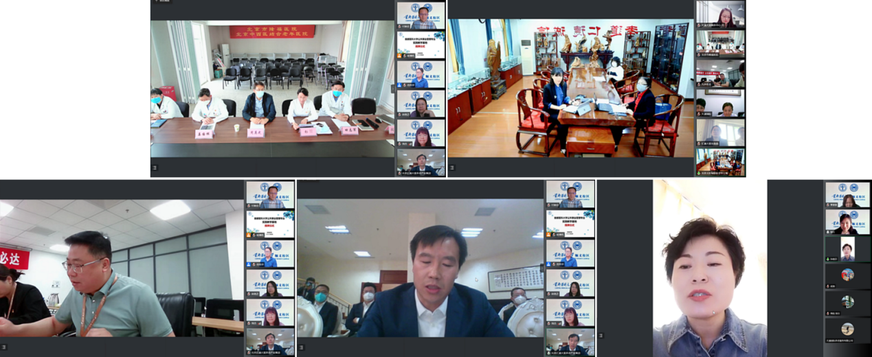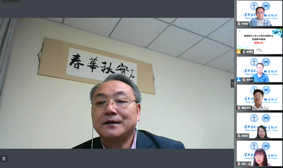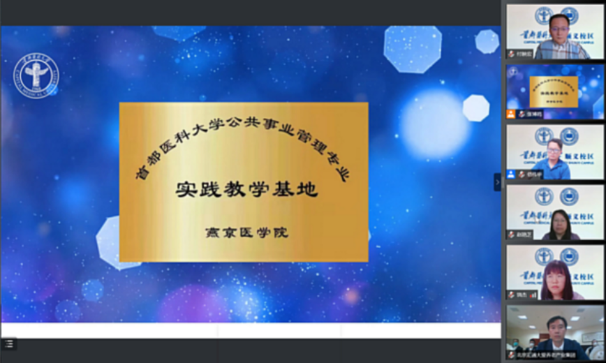 5月17日,我院二年制公共事业管理专业实践教学基地授牌仪式通过线上的方式举行。学校副校长王松灵院士、教务处处长武艳、副处长朱淼、东城区卫生健康委副主任周英武出席了仪式。参加本次线上授牌仪式的基地主要领导有北京市隆福医院姜国栋书记、彭堃院长,北京九华养老服务有限公司徐进副总经理,北京汇通大爱养老产业集团赵国良总经理、郭遐副总经理,北京寿山福海投资发展集团有限公司孙艳芬副总经理,北京太阳城银龄老年公寓崔又双总经理,wepoker德州 党委副书记赵艳芝,预防医学学系和教学办的相关负责人等参加了签约仪式。仪式由wepoker德州 杨红院长主持。