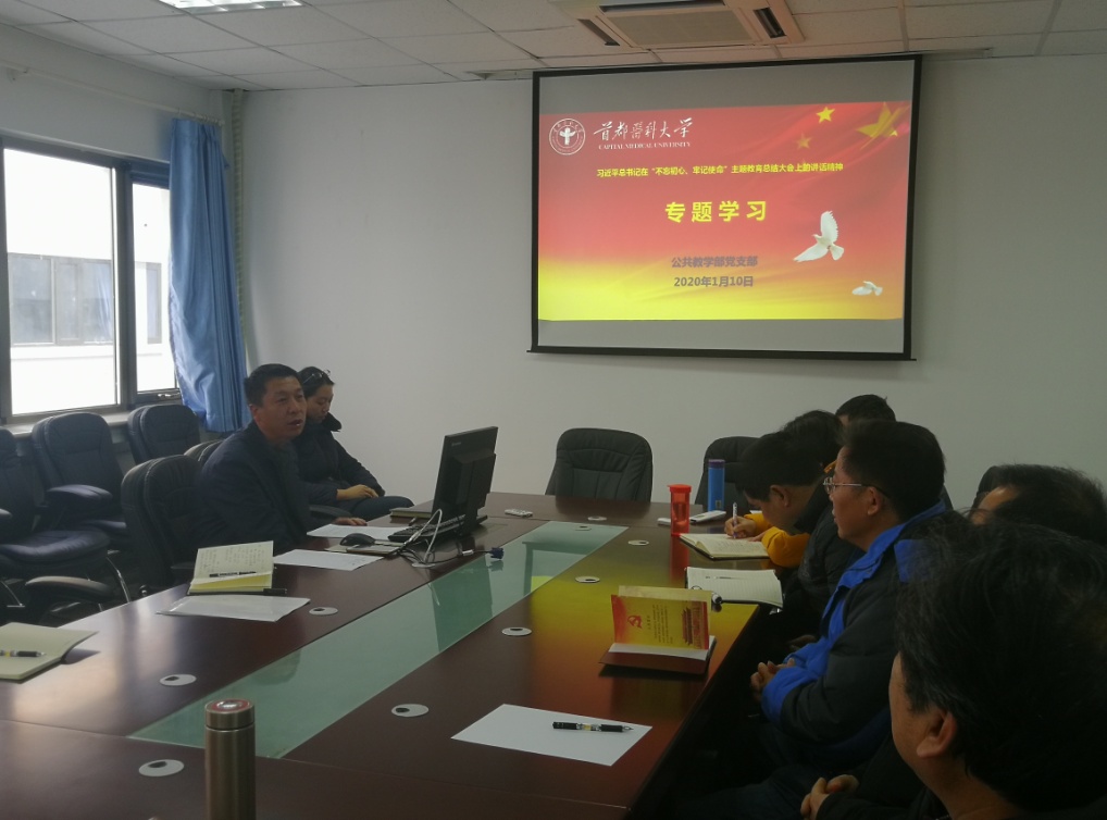 wepoker德州 公共教学部党支部组织支部党员学习习近平总书记在中央“不忘初心,牢记使命”主题教育总结大会讲话精神