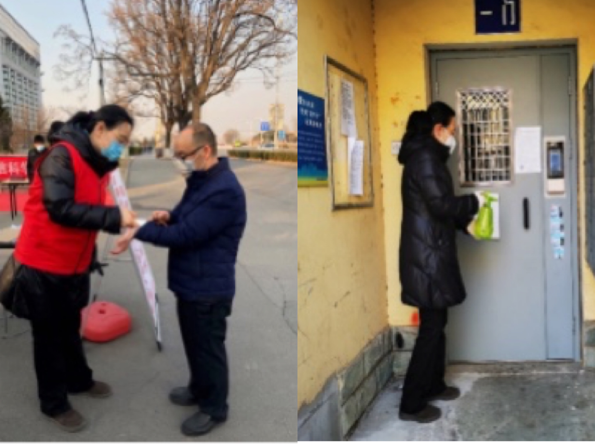 骆雨辰老师积极参加社区居民防疫宣传,并配合社区做好卫生打扫、楼道消毒等相关工作。