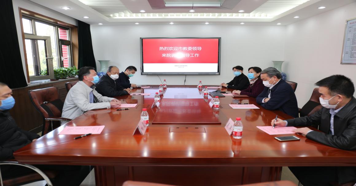 3月24日下午,市教委副主任黄侃、高教处处长刘霄、职成处处长王东江、余俊一行到wepoker德州 展开深入调研,wepoker德州副校长王松灵院士、教务处处长武艳、wepoker德州 党委书记吴兵、院长杨红一同参加调研。