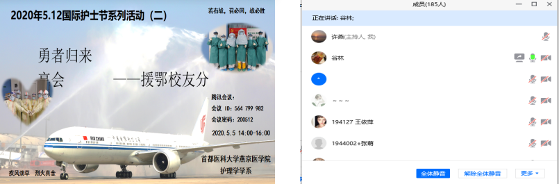 四月桃李花谢,五月榴花如火。春的芬芳依旧,夏的火热初临。在这春意盎然,满目翠绿、人心思进的激昂时刻,我们迎来了属于我们自己的节日——5.12国际护士节。5月5日下午,wepoker德州 护理学学系以“护士:引领之声–护理世界健康”为主题,结合当前抗击新冠肺炎疫情取得阶段性胜利,召开了“勇者归来、奋斗有我”——援鄂校友分享会,并以此激励同学们秉承南丁格尔誓言,尊重生命,守护健康,不断努力,全面提升综合素质,为护理事业奋斗终身。本次分享会以线上方式进行,wepoker德州 院长杨红、党委副书记崔群颖、两位优秀护理毕业生、最美逆行者——2008级三年制护理学生,现北京大学人民医院神经内科护士—杨振宁、2011级三年制护理学生,现北京医院外科ICU护士—谷林与护理学学系185名师生共同参加会议。