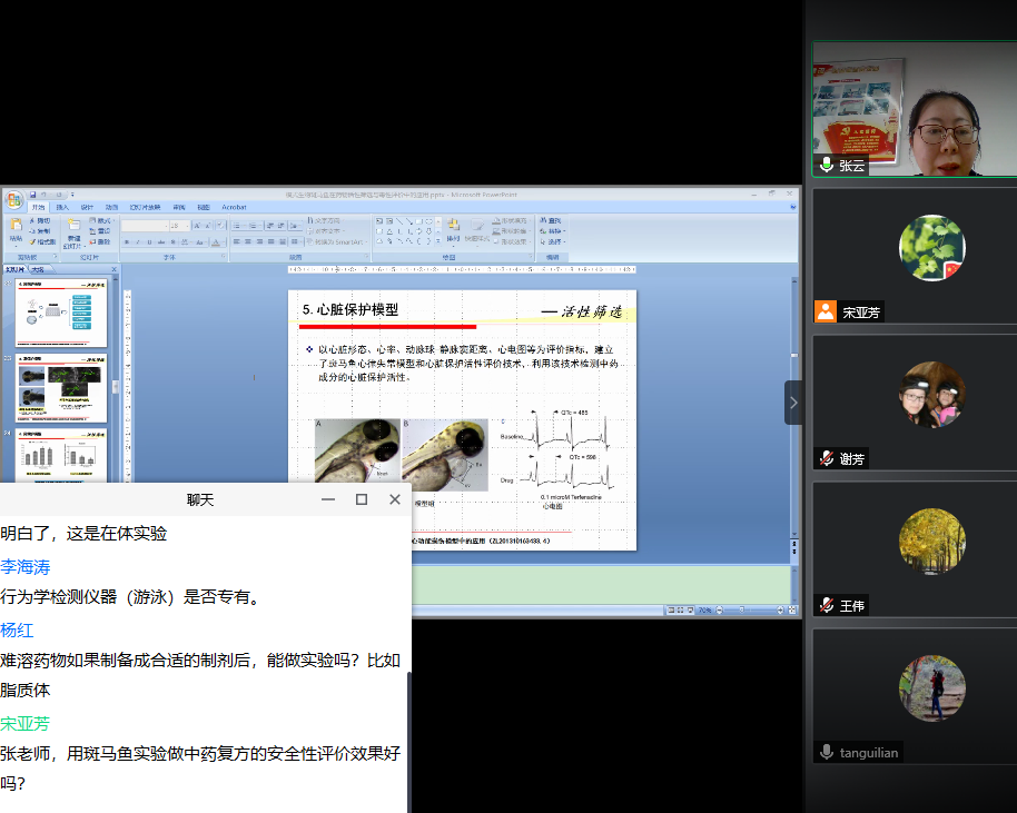 为促进我院教师开展基于斑马鱼实验技术的相关科学研究,深入了解斑马鱼实验模型在药物活性筛选与毒性评价中的应用,7月3日上午,wepoker德州 检验学学系特别邀请山东省科wepoker德州 首席研究员张云主任通过腾讯云端会议,开展题为《模式生物斑马鱼在药物活性筛选与毒性评价中的应用》的学术讲座。杨红院长主持会议并讲话,wepoker德州 50余位教师参会。