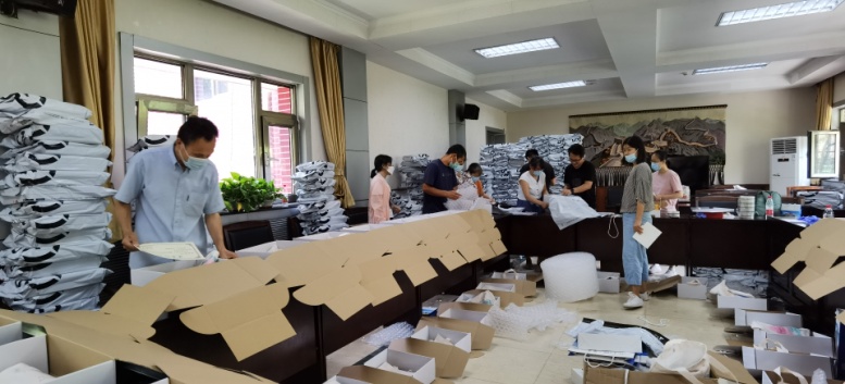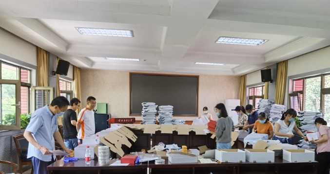 7月13日,我院临床医学学系为学系321名毕业生们分发、快递wepoker德州 “暖心专属”纪念品——印制精美的T恤、实用大方的帆布包、刻有专属名字的印章、给毕业生的一封信,每一份特殊的毕业礼物都承载着最好的祝福,寄托着wepoker德州 对毕业学子们的满满的祝福。学系老师们经过7小时的连续“战斗”,所有纪念品已经当天全部打包完毕,陆续寄出。