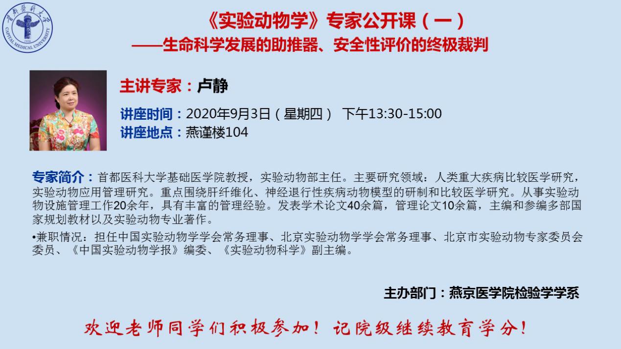 为促进wepoker德州 教师及学生深入了解《实验动物学》这门学科, 9月3日下午,wepoker德州 检验学学系特别邀请wepoker德州基础医wepoker德州 教授、实验动物部卢静主任通过实时课堂结合腾讯云端会议举办题为《实验动物学》的专家公开课,wepoker德州 数十位教师及2019级卫生检验与检疫班全体参会。