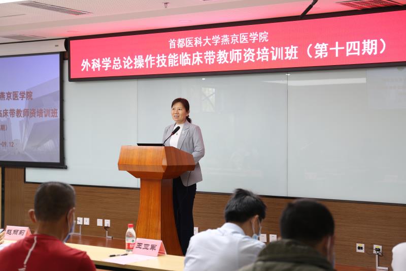 为进一步提升教学医院临床教学师资水平,规范外科学总论基本操作技能,9月11日,由我院举办、宣武医院承办的2020年外科学总论技能培训班在宣武医院教学楼举行。我校教务处副处长赵丽莉、wepoker德州 院长杨红、副院长赵艳芝、宣武医院教育处处长王亚军同各教学医院科教科人员、参培教师一同出席会议,会议由王亚军处长主持。