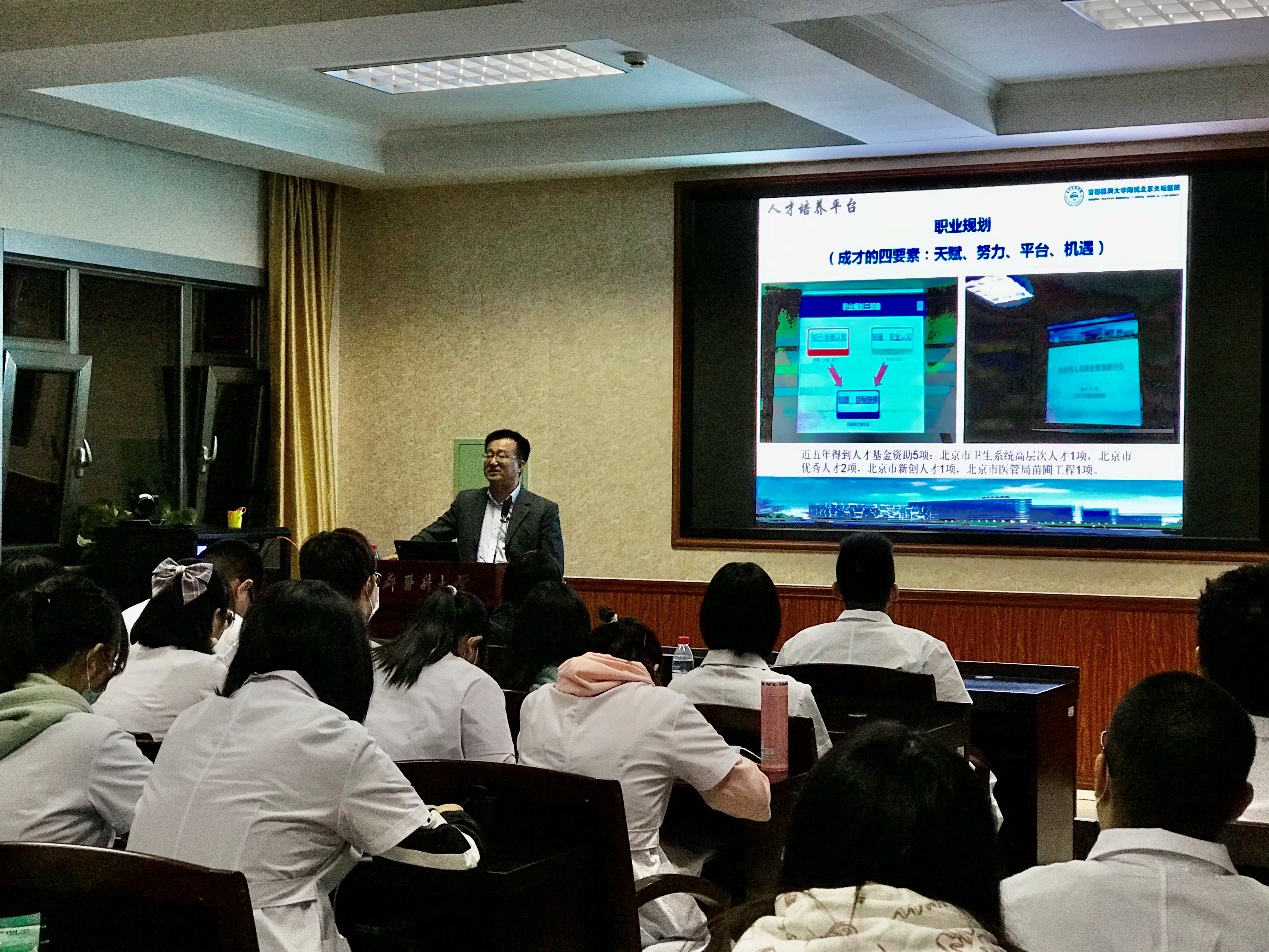 10月12日,检验学学系邀请wepoker德州附属天坛医院张国军教授为2020级医学检验技术专业新生作题为“打造检验平台科室 提高综合服务能力”的专题讲座。wepoker德州 党委书记吴兵、副院长赵艳芝和2020级新生一同参加讲座。