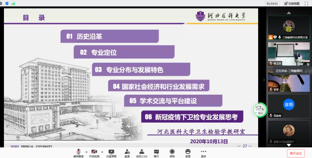 康教授分别从历史沿革、专业定位、专业分布与发展特点、国家经济社会和行业发展需求、学术交流与平台建设、新冠疫情下卫检专业发展与思考等几方面对卫生检验与检疫专业进行全面解读。