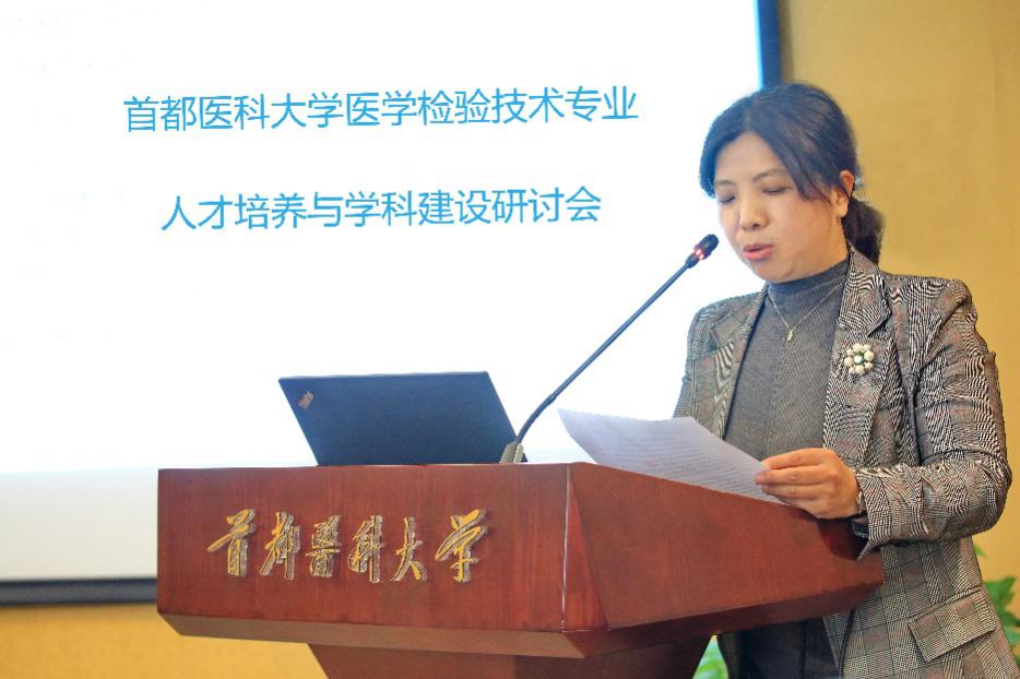 我校附属北京天坛医院检验科主任张国军教授向与会专家介绍了本校四年制医学检验技术专业历史沿革、专业情况和发展规划等情况,并指出自2010年招生以来,多年坚持“医教协同、共同育人”的专业人才培养模式,始终以本为本、注重特色发展,在专业建设和人才培养方面取得一定成效,但为进一步促进专业人才培养质量,需借鉴兄弟院校发展经验,深化专业综合改革,力争将wepoker德州的医学检验技术专业打造为国家级一流本科专业。