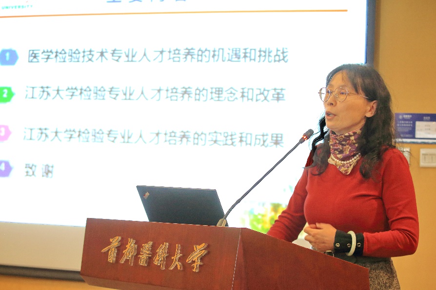 江苏大学医wepoker德州 院长钱晖教授分享了该校“三引领、五思维、七联动”检验医学创新人才培育模式和国家级精品课程、在线开放课程建设中的经验,并分析了新时期医学检验技术专业人才培养所面临的挑战和机遇。