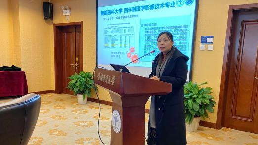 研讨会的第二部分以附属北京天坛医院前外科主任袁辉生教授分享自己多年的教学经验拉开序幕。袁主任以自身多年的教学经历为蓝本,讲述了如何讲好一堂课。随后,医学影像学学系主任胡玲静从在校生情况、学科带头人、系部组织、当前专业的教学模式及师资力量全面地介绍了学系情况,胡主任表示医学影像技术专业的建设是落在每位同行身上的重担,为社会培养出能在工作岗位上发挥作用、受到社会认可的人才是教育工作者们永远追求的目标。
