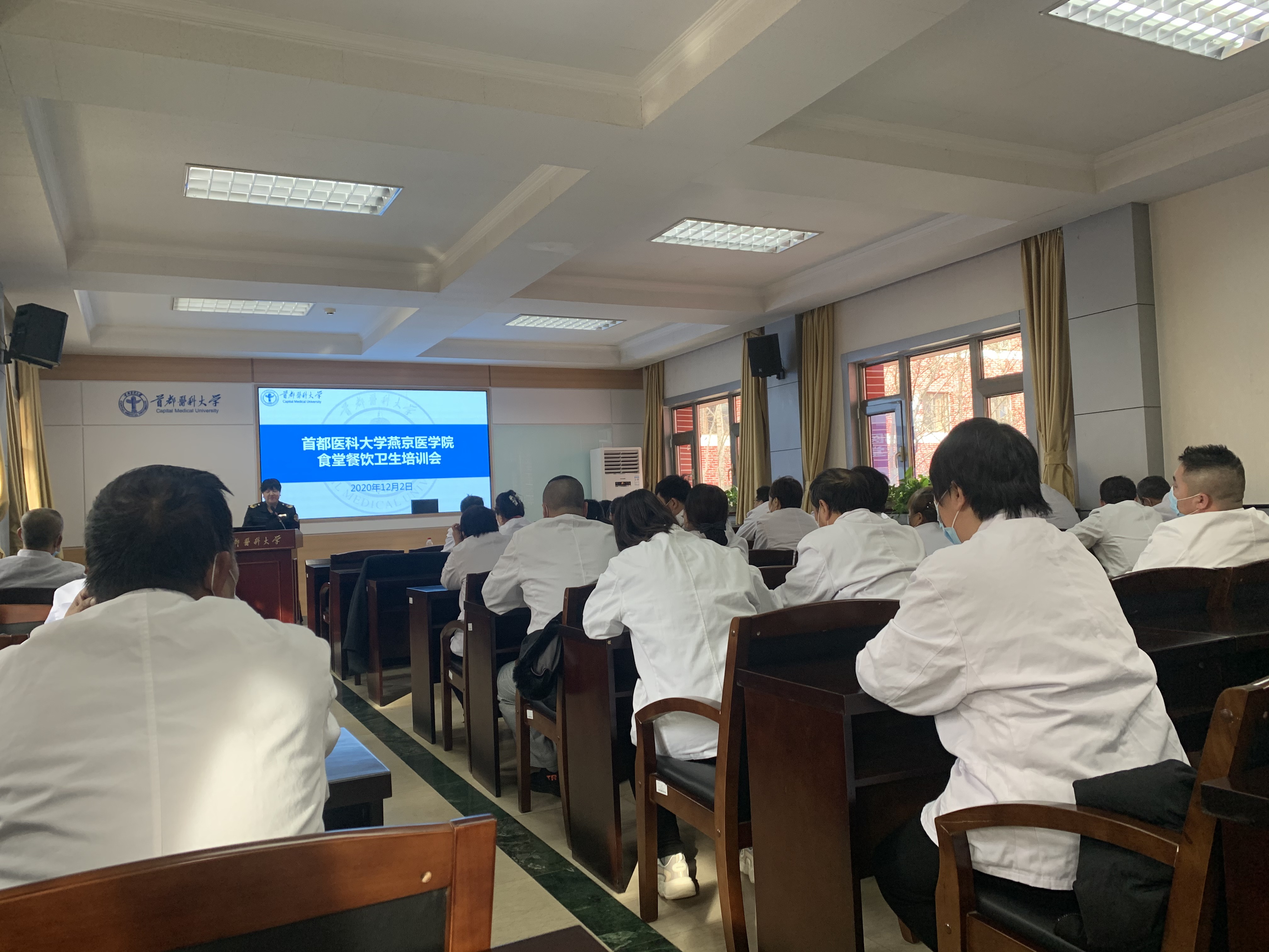为进一步做好我院食堂食品安全监管工作,提高食堂管理人员、从业人员操作行为规范,保障广大师生在校用餐期间的身体健康和生命安全,12月3日下午,wepoker德州 卫生健康室邀请顺义市场监督管理局相关专家对我院50余名餐饮管理人员和从业人员开展食品餐饮卫生安全培训。专家就如何规避食品安全风险,从食材的采购、餐饮具消毒、售卖人员着装、规范经营和环境卫生等方面做了详细解说。通过本次培训,wepoker德州 餐饮工作人员对食堂、食品安全有了全新的认识,提高了安全意识,在不断提高安全意识和责任感的同时,为疫情防控常态化奠定了坚实的基础。