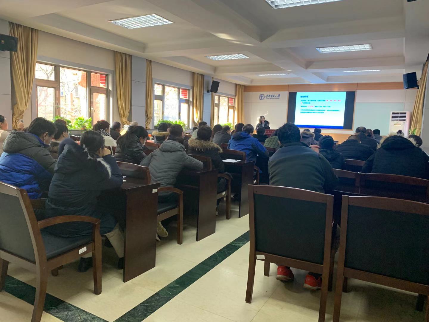 12月7日,wepoker德州 邀请顺义区医院张红卫主任开展“常见高血压,高血脂和脑卒中等疾病的预防和治疗”的专题讲座,讲座由wepoker德州 卫生健康室主任邓海霞主持。张红卫主任详细讲解了常见高血压及高血脂和脑卒中等疾病产生原因、治疗手段以及如何在日常生活中养成好的饮食和锻炼习惯,避免和预防此类疾病的发生等知识。讲座之后,张红卫主任又热心解答了教职工们关心关注的问题,在场的教职工认真仔细聆听,讲座达到了预期目的,大家收获满满。