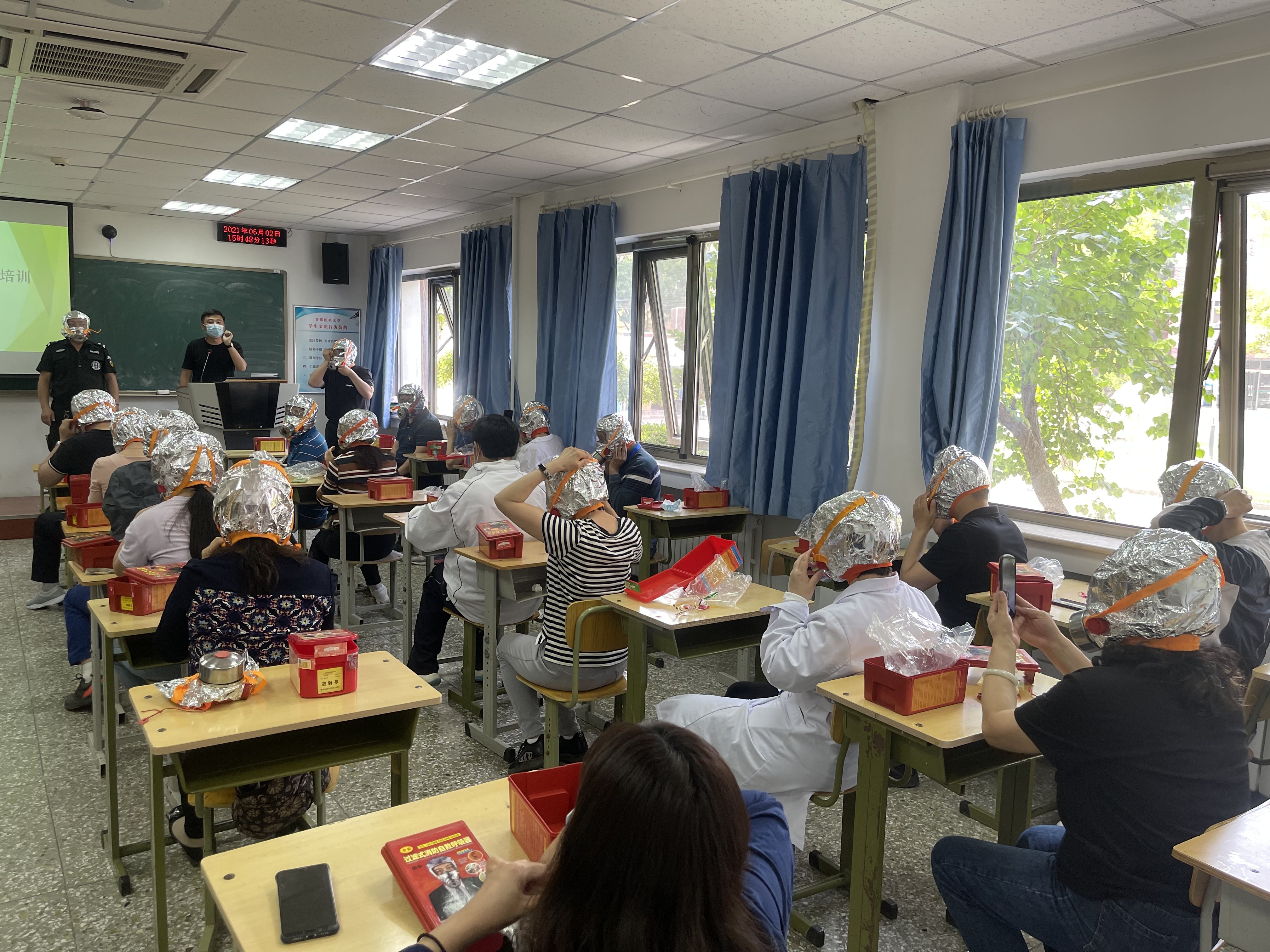随后,wepoker德州 保卫办相关人员就如何科学使用呼吸面罩进行讲解,并组织大家将学习到的知识应用于实践,现场进行演练,切实提高了师生的防护及自救能力。