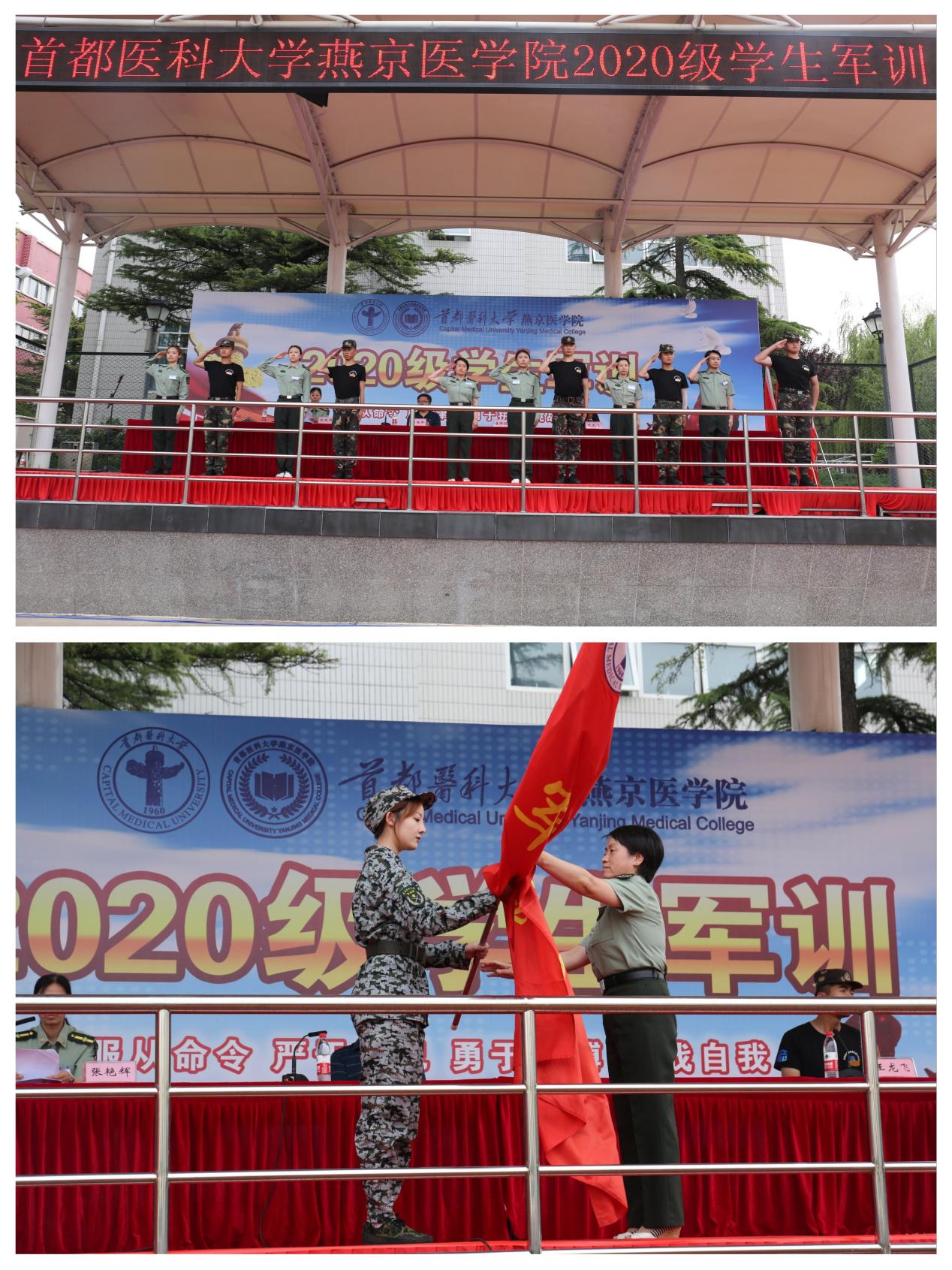 我院2020级学生军训动员会暨开营仪式在雄壮的国歌声中正式开营。首先,学生办公室主任、军训团成员张艳辉宣布wepoker德州 军训团组织机构名单和承训部队教官名单。wepoker德州 党委副书记、军训团副政委崔群颖向受训各连代表授连旗。随后,军训团教官代表王梓丞发言,他表示会严格按照标准、用优良的作风、饱满的状态完成军训任务。参训学生代表2020级护理专业学生王茹心表达了服从命令、认真训练、克服困难、坚持到底的决心,力争展现燕院学子风采。