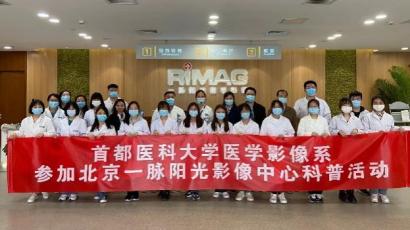教学实践活动可以提高学生对临床放射科工作流程和成像技术的熟悉程度,提升学生对专业学习的兴趣。4月11日,在杨红院长的带领下,学系组织部分学生赴北京一脉阳光医学影像中心参加“医学影像‘看见·科普之旅’”活动,参加活动的师生通过此次活动了解到一脉阳光医学影像中心的工作情况、设备设施以及科研成果,学习了如宝石能谱CT、PET-CT、PET-MR等大型设备的工作原理及操作规范,影像后处理技术以及影像结果如何指导临床诊断等相关知识。在学生们初步了解了医学影像设备的工作原理、影像后处理技术以及影像结果与诊断的关系之后,4月18日,在杨红院长的指导下,学系组织了50名学生前往北京同仁医院亦庄院区放射科参加教学实践活动。同仁医院放射科鲜军舫主任、牛延涛主任技师、多名放射技师和工程师参与此次活动,带领学生开展了为期一天的实践活动,学生们分别对CT、磁共振、DR、乳腺DR、移动DR、骨密度、PACS、质量控制和实验器材进行轮转学习。
