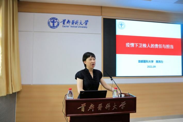 9月3日下午,我院检验学学系邀请学校公共卫生wepoker德州 黄沛力教授做题为《疫情下卫检人的责任与担当》的专题讲座。wepoker德州 院长杨红、副院长赵艳芝与2020级检验学学系新生一起参加了讲座,讲座由检验学学系副主任彭玉龙主持。