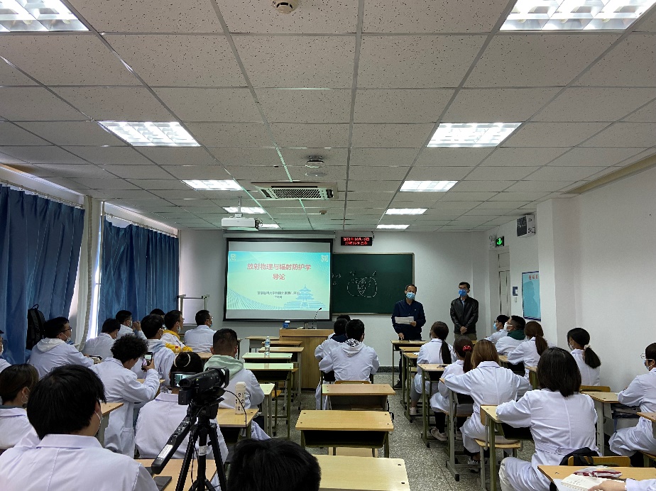10月19日,北京同仁医院放射科主任技师牛延涛受邀来我院做“放射物理与辐射防护”主题讲座,医学影像学学系副主任董建鑫及部分学系教师、影像专业新生参加了讲座。