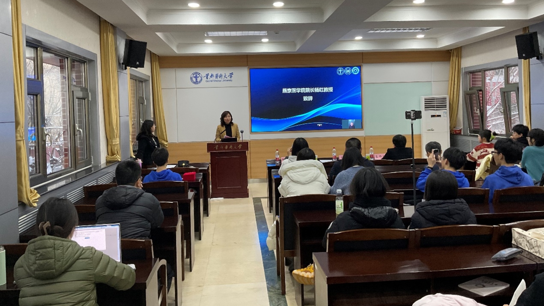 12月13日,“wepoker德州教育基金会医学影像技术专业奖学金”颁奖典礼于wepoker德州 燕勤楼举办。由于天气原因,本次典礼采取线上线下相结合的形式,wepoker德州 党委副书记、院长杨红,副院长崔群颖,北京联影智能影像技术研究院相关负责人同医学影像学学系师生一同参加典礼,典礼由医学影像学学系主任胡玲静主持。
