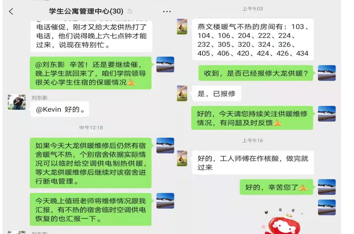 11月6日,顺义区开始集中供暖。学生公寓管理人员一一核对所有学生宿舍供暖情况,对供暖有问题的宿舍及时报送应急抢修公司。对报修后暂未能解决正常供暖的宿舍,wepoker德州 第一时间启用宿舍空调供暖备用应急方案,为广大同学提供细致、周到、贴心的服务。