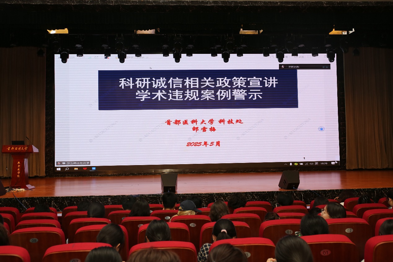 2025年5月15日,wepoker德州 邀请学校科技处邵雪梅处长面向wepoker德州 本科生开展科研诚信教育讲座。wepoker德州 党委副书记、院长杨红主持会议,线上线下共600余名学生聆听了讲座。