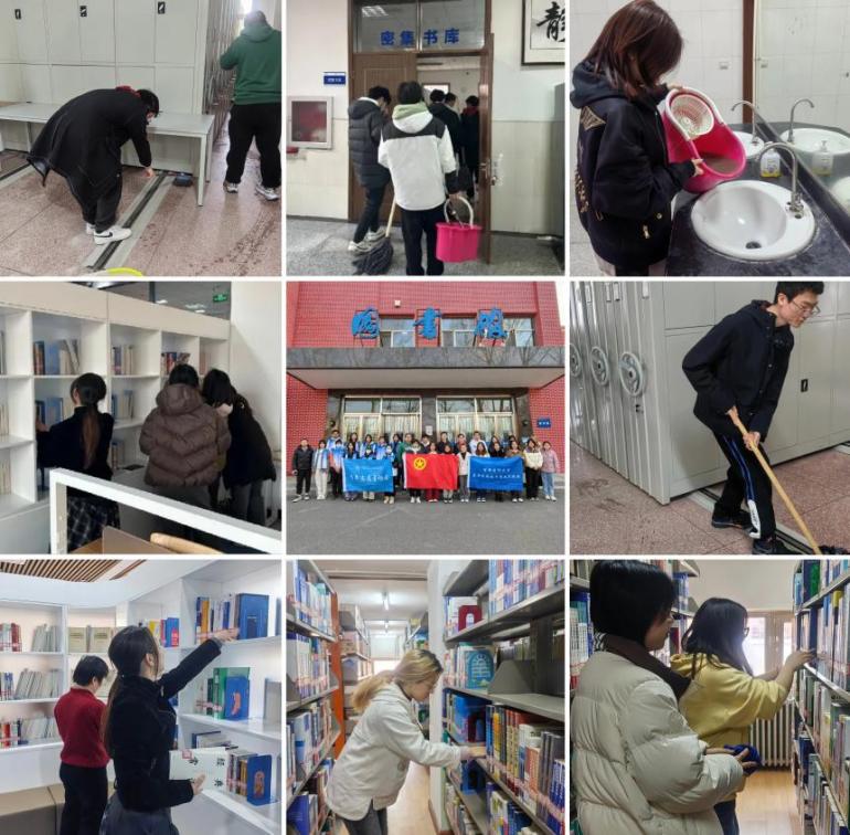 23级影像班团支部和青年志愿者协会在图书馆开展专项志愿服务,学生们在图书馆老师组织下精准施力,明确分工、有条不紊地完成书架除尘、地面清洁、图书分类归位等工作。活动同步开展馆藏图书认知实践,在优化阅读环境、强化公区维护意识的同时,深化了青年学子对劳动价值与团队协作的认知,激发常态化志愿服务内生动力,为校园图书馆带来了全新的面貌。