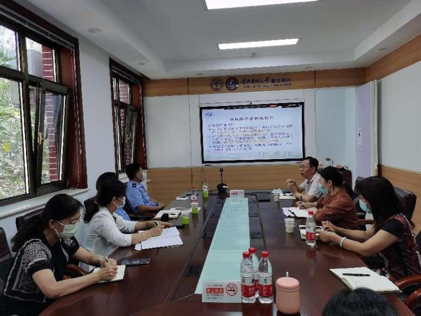 张松建副主任重点介绍了第九版防控方案中主要修订内容及高校疫情防控要求,围绕“如何进一步完善高校疫情防控”工作与现场负责人进行了互动,针对应急预案流程中的一些疑惑和问题进行答疑解惑,并对我院目前在实施的“2小时突发疫情应急触发处置工作预案”提出了优化建议,强调要实行精准网格化管理,明确了阳性筛查定位转运流程。