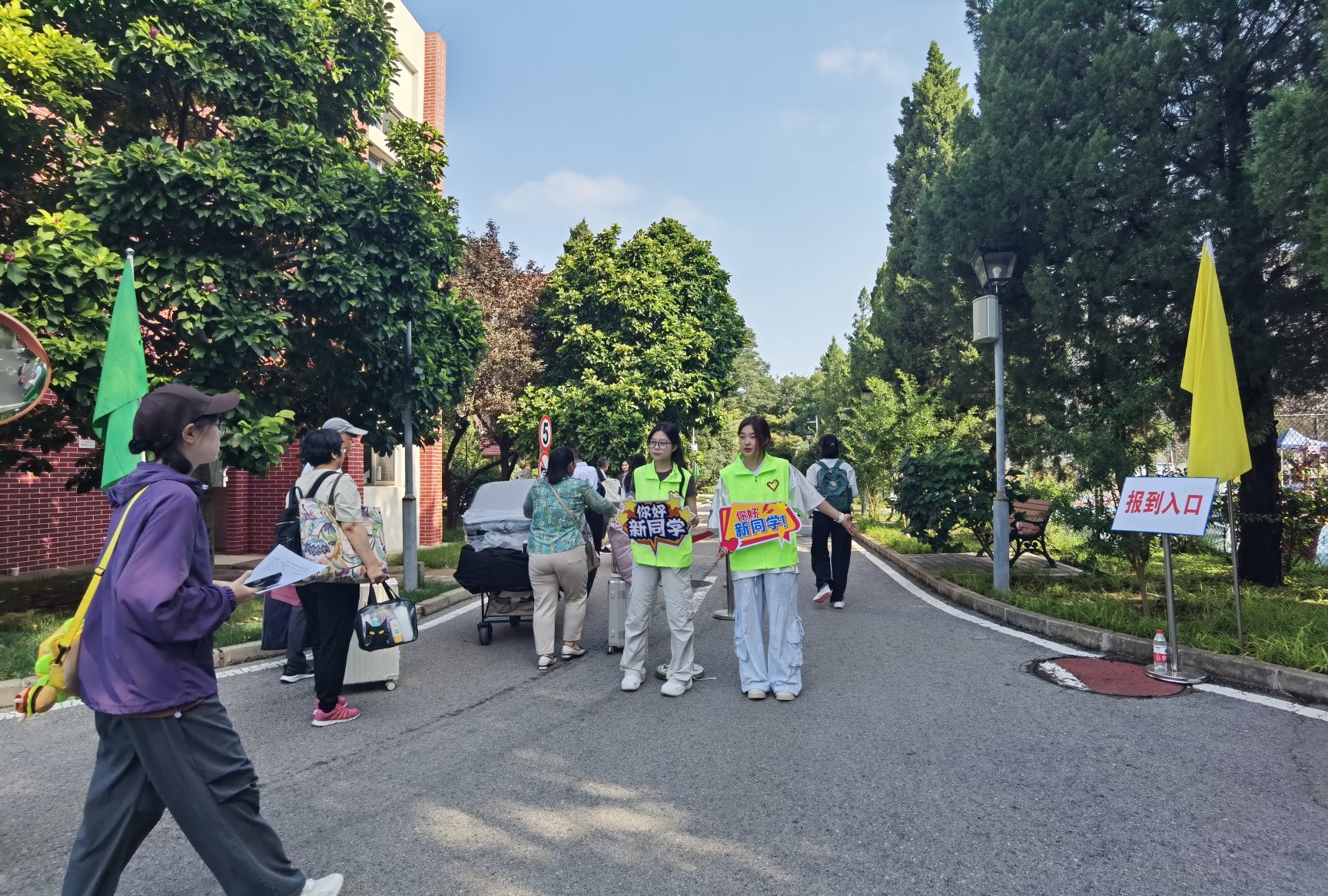 坚守岗位的学生志愿者们从路线指引到行李搬运,奔波往返于校园内的各个角落,始终陪伴在新生们身边,担任着他们入校第一天的“守护者”,让初来乍到的学子们实现了从家园到校园的无缝对接。