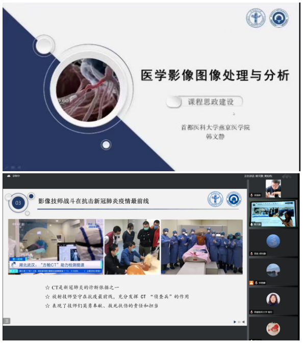 我院医学影像学学系韩文静老师、河北医科大学医学影像wepoker德州 程莉老师、天津医科大学医学技术wepoker德州 王者香老师作为教师代表进行了课程思政展示。他们的课程,思政育人贯穿整个授课过程,旨在培养学生的终身学习能力,树立严谨的科学态度、创新意识以及团队合作精神,坚定学生们的大国工匠精神、医者仁心的大爱意识和为人类健康奋斗的远大理想,在传授知识的过程中,进行能力培养和价值塑造。