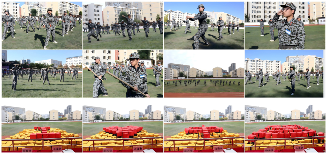 在特色科目展示环节,同学们以应急棍术、擒敌拳、匕首操和方阵变字等科目,展现了军训成果。应急棍术虎虎生风,彰显男儿本色;擒敌拳招招制敌,尽显刚健气魄;匕首操飒爽凌厉,绽放巾帼英姿。最动人的一幕来自156名学子以身躯为笔,在训练场上庄严拼出“80”、“65”“我爱中国”“我爱首医”等字样和图样,用青春致敬峥嵘岁月,以赤诚献礼母校华诞。