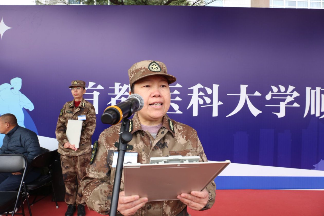 在激昂的《分列式进行曲》中,各连队方阵依次走过主席台。分列式上,连队方阵步伐统一,气势如虹。从一连的钢铁意志到五连的巾帼英姿,每一个挺拔的身姿,都在诉说着“流血流汗不流泪”的坚毅;每一句震天的口号,都在回响着“健康所系,性命相托”的初心。