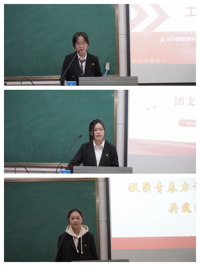 本期交流培训会围绕“团支部工作经验分享和团务工作培训”展开。在“经验分享”环节,21影像张珏雅、22急救辜心宝、22卫检赵清锶、23预防齐昱博、23影像崔梦娇5位优秀团支书,从团支部工作开展经验、工作创新点以及个人工作技巧等方面向新生团干部进行讲解、展示,激发他们对团支部工作的热情和立志将工作“做好、做新、做出彩”的决心。