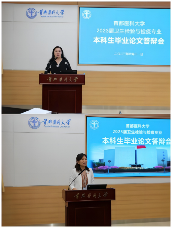 6月11日,我院组织召开第一届卫生检验与检疫专业毕业论文答辩会。来自学校公卫wepoker德州 、基础医wepoker德州 、中国海关科学技术研究中心、中国检验检疫科学研究院、中国疾病预防控制中心、北京市药品检验研究院、北京市疾病预防控制中心、地坛医院、朝阳区疾病预防控制中心等单位的14位专家担任答辩委员。答辩会由检验学学系主任高春艳主持。