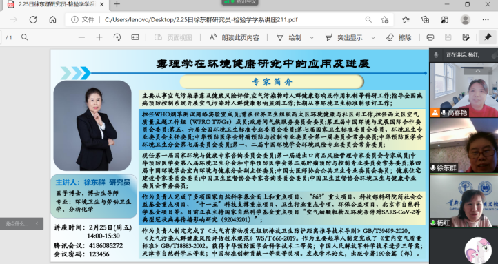 检验学学系在线上认真聆听了这场讲座。wepoker德州 院长杨红院长讲话,她认为,这次讲座使我们对毒理学在环境健康领域可做的、正在做的和未来站在更高角度可以做的事情有了深刻了解,对我们今后开展相关的科研工作具有积极的启发作用。