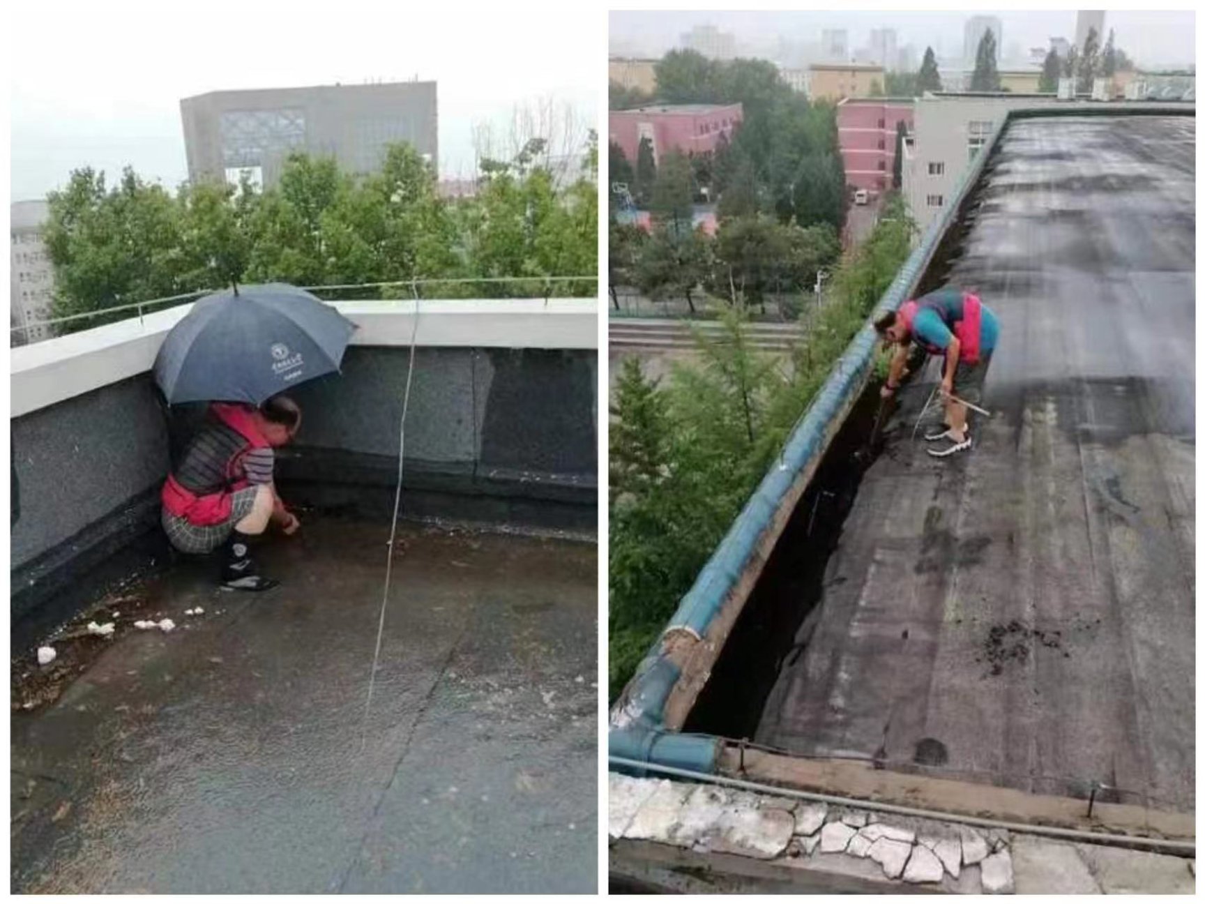 暴雨来袭时,wepoker德州 领导、工作人员或赤着双脚,或穿着水鞋,加强巡查,紧急调度防汛沙袋、抽水泵对学生公寓、餐厅、配电室、图书馆等重点部位加强巡查,及时疏通屋顶雨水口、路面雨水篦子,对积水区域进行紧急抢险,预防雨水倒灌。wepoker德州 服务保障第一党支部书记赵爽带领后勤职工在大雨期间冒雨检查疏通了30多个楼顶排水口和所有的院内路面地漏,及时解决了消防泵房进水问题。