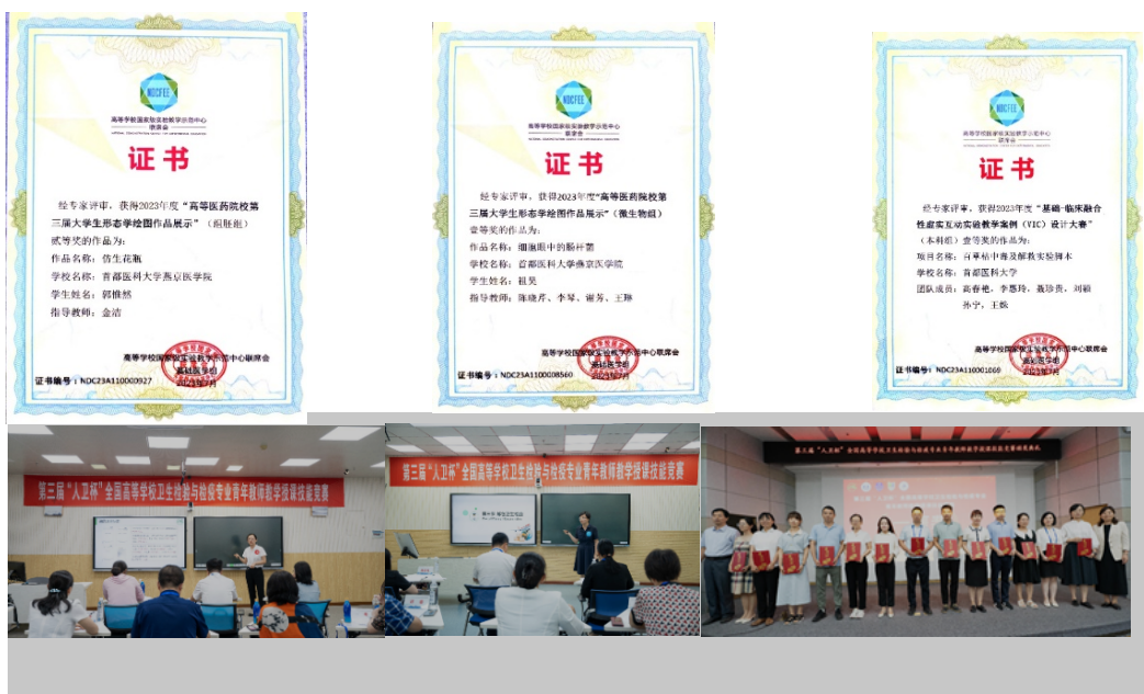 2023年8月,在第三届“人卫杯”全国高等学校卫生检验与检疫专业青年教师教学授课竞赛”中,孙宁老师获得小组授课竞赛“特等奖”、“最佳教案奖”、“最佳课件奖”,史凡老师获得小组授课竞赛“一等奖”、“最佳教案奖”的佳绩(指导教师:杨红)。