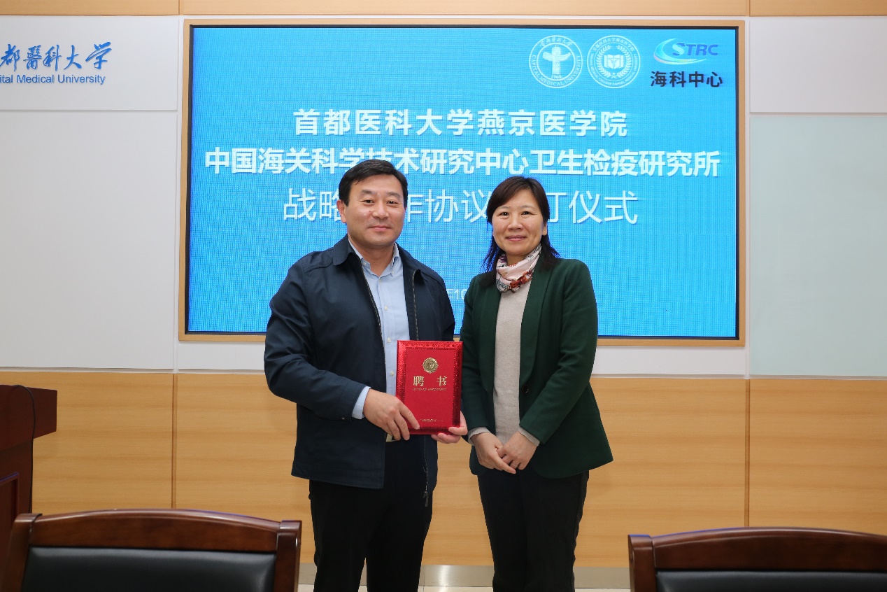 杨红院长和张晓龙所长共同签订《wepoker德州wepoker德州 与中国海关科学技术研究中心卫生检疫研究所战略合作协议》。杨红院长为宋悦谦主任颁发wepoker德州卫生检验与检疫专业特聘专家聘书。