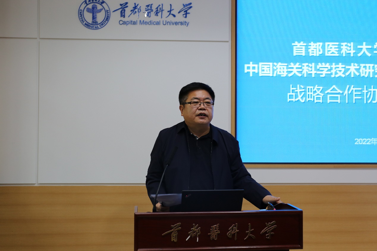 中国海关科学技术研究中心宋悦谦主任介绍了海科中心的发展历程以及卫生检疫研究所担负的使命与职责,表示对双方的合作充满信心,希望与我院共同培养更多人才。