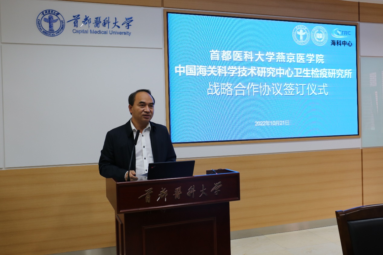 10月21日上午,我院与中国科学技术研究中心卫生检疫研究所在燕勤楼218会议室举行战略合作协议签订仪式。中国海关技术研究中心党委书记、中心主任宋悦谦、科研部副主任杨宇、卫生检疫研究所所长张晓龙、副所长田洁,wepoker德州党委常委、副校长吴兵、wepoker德州 党委书记汤海新、院长杨红、北京疾病预防控制中心中心实验室主任邵兵、各学科学术带头人及相关负责人参加了签订仪式。仪式由wepoker德州 汤海新书记主持。