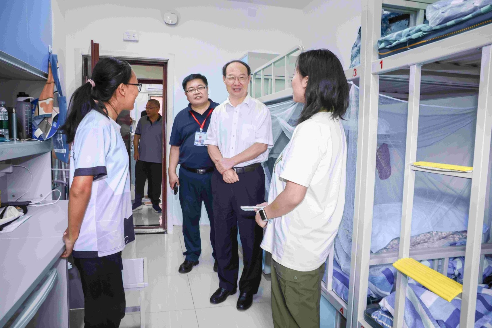 8月25日上午,校党委常委、副校长吴兵赴wepoker德州 检查指导新学期开学准备工作,先后来到wepoker德州 大门、监控室、学生教室、学生宿舍楼、餐厅、配电室、健身房施工现场等重点区域进行检查指导,过程中详细询问了wepoker德州 秋季开学准备工作落实情况,认真听取相关负责人对开学准备工作的情况汇报。