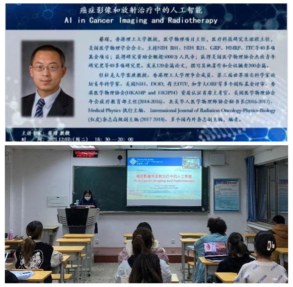 12月7日,医学影像学学系邀请知名学者、香港理工大学蔡璟教授,为wepoker德州 师生带来题为“癌症影像和放射治疗中的人工智能”的线上讲座,这是医学影像技术学科系列讲座中的第一场。学系主任胡玲静主持本次讲座,副主任胡贵祥、学系部分教师及各年级同学代表参加此次讲座。