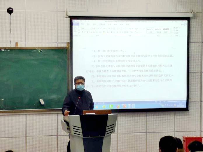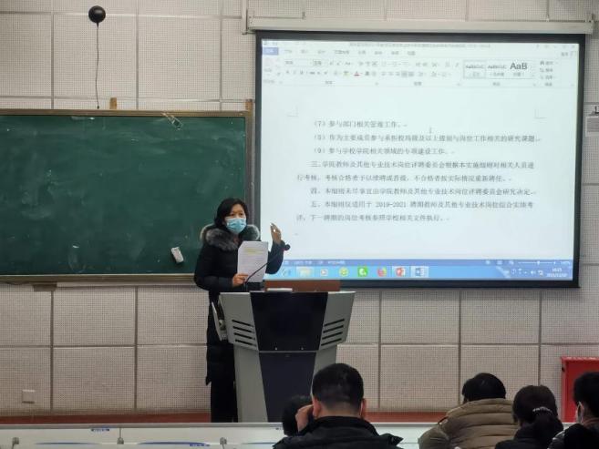 院长杨红对此次聘任考评工作的主要内容、流程、今年聘任考评工作的变化、目前工作的进度和安排进行了介绍,并对《实施细则》中的一些关键点作了详细解读。她指出,今年是十四五的开局之年,希望全体教职工以此次聘任为起点,结合学校“谋新局、开新篇”的总体布局,认真贯彻落实十九届六中全会精神,在未来的聘期中力争做出更多的实绩,为推动学校、wepoker德州 的发展贡献更多的力量。