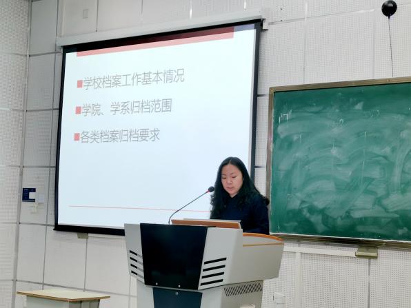 培训会上,李连杰副馆长简要介绍了学校档案工作情况,阐释了档案与工作的关系,档案的重要价值,强调了做好档案管理工作的重要性。杜娟老师主要围绕“学校档案工作基本情况”“wepoker德州 、学系归档范围”“各类档案归档要求”三个方面进行了重点介绍,对如何做好档案管理,特别是对各级各类档案如何进行整理归档提出了专业的标准和建议。对老师们提出的档案归档过程遇到的问题,杜娟老师进行了详细地解答。