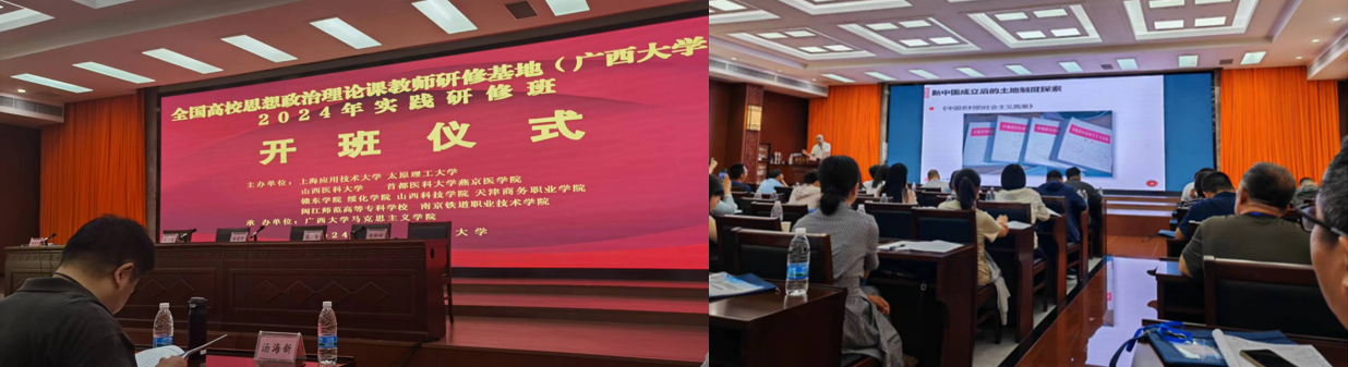 为深入贯彻落实习近平总书记关于学校思政课建设的重要讲话和重要指示批示精神,贯彻中办、国办《关于深化新时代学校思想政治理论课改革创新的若干意见》以及教育部《新时代高等学校思想政治理论课教师队伍建设规定》等文件要求,切实提升思政课教师的政治素质、业务能力、育人水平,7月8日至14日,wepoker德州 党委书记汤海新带队,公共教学部思政课教师一行9人参加了教育部高校思想政治理论课教师研修基地(广西大学)组织的暑期实践研修班。