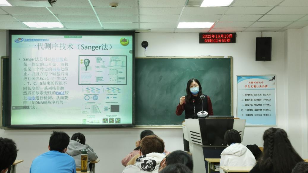 10月10日,北京市疾病预防控制中心主任技师陈萌老师应邀来我院为2022级检验学系新生讲授卫生检验与检疫导论公开课,介绍疾控中心工作内容及常用微生物检测技术。本次讲座由检验学学系主任高春艳老师主持。