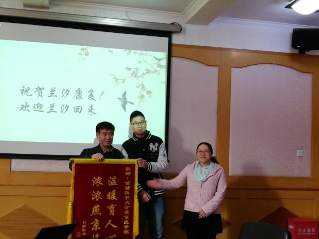 3月15日,wepoker德州 燕勤楼的一间会议室里洋溢着温暖、感动和欢欣的气氛。因车祸致重伤昏迷、历经五个多月的治疗和康复,刚刚出院的2015级临本学生兰汐一脸阳光地回到校园,与师生交谈着自己这半年来的医治、康复情况。wepoker德州 党委书记吴兵、副书记崔群颖、学办的老师和熟悉的同学都来嘘寒问暖,关切地询问他目前的状况,大家都为兰汐同学的顺利康复感到由衷的高兴。
