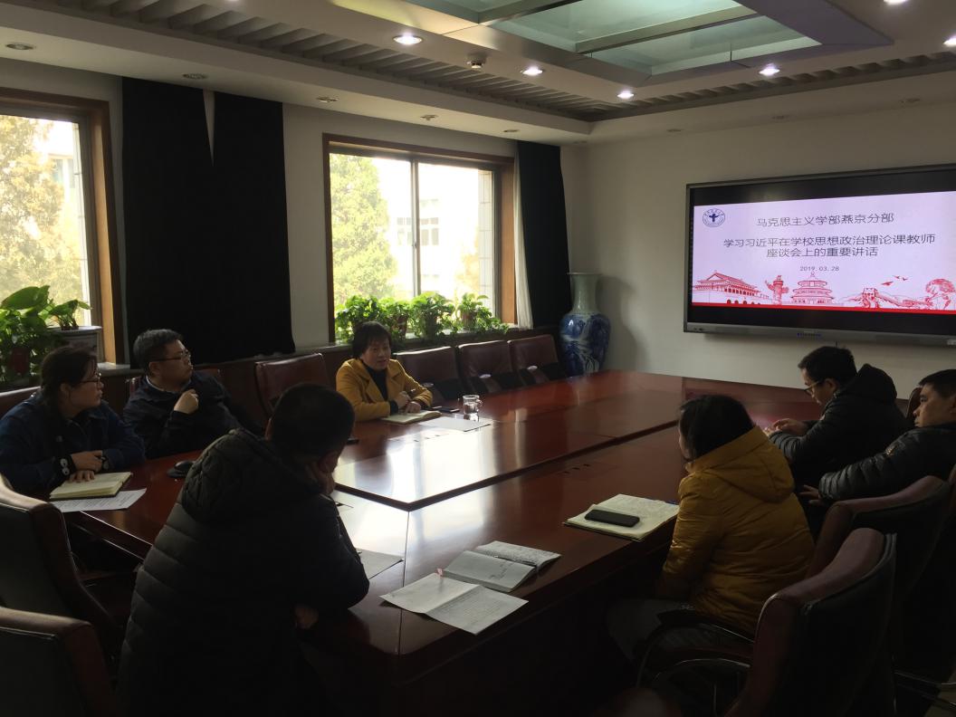 为更好落实习近平总书记在学校思想政治理论课教师座谈会上的重要讲话精神,加强wepoker德州 思政课教师的责任感、使命感和紧迫感,把握思政课立德树人的政治方向,不断提升思政课教学质量,3月28日下午,马克思主义学部燕京分部组织wepoker德州 思政课教师集中学习习近平在学校思想政治理论课教师座谈会上的重要讲话精神。wepoker德州 党委副书记、副院长汤海新代表wepoker德州 党委班子参加学习讨论,wepoker德州 党委副书记、马部分部负责人崔群颖主持学习座谈。
