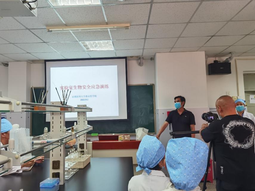 根据北京市卫生健康委员会《关于组织开展人间传染的病原微生物实验室生物安全应急演练的通知》的要求,9月1日下午,由wepoker德州 国有资产与实验室办公室组织,检验学学系、护理学学系协助,我院在燕谨楼219实验室开展了实验室生物安全应急演练。wepoker德州 副院长刘清、实验室管理人员及各实验中心实验技术人员参加了演练活动。