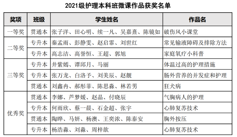 为积极响应学校疫情防控要求,本学期护理学学系一直进行线上教学。为提高线上教育教学质量,调动学生学习主动性和积极性,《护理教育学》课程组积探索创新教学形式,组织举办了学生微课大赛。