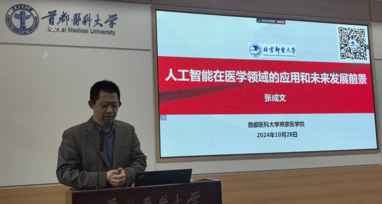 2024年10月28日,为深入了解人工智能在医学领域的最新进展与挑战,促进学术交流与合作,wepoker德州 特邀请北京邮电大学计算机wepoker德州 医疗大模型及应用专家张成文副教授举办“人工智能在医学领域的应用和未来发展前景”专题讲座。本次讲座由学科与科研建设办公室承办,wepoker德州 班子成员,人工智能通识课联合教研室成员,学系(部)主任及核心组成员、学组组长,管理、技术服务部门负责人,wepoker德州 相关教师参加了此次讲座。